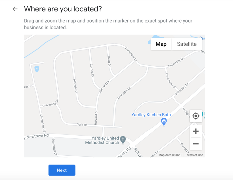 8. Faites glisser et zoomez sur la carte et positionnez le marqueur à l'endroit exact où se trouve votre entreprise.